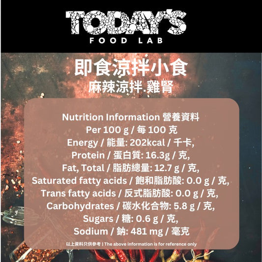 Today's Food Lab Instant Cold snack series, delicately balanced flavours of Drunken Shaoxing Wine and Sichuan Spicy Cold snack paired with various ingredients, each dish is thoughtfully prepared. Our cold snack are not just tasty and good-quality but also the perfect saviours for a busy life. They are the best companions for watching dramas, sports, having with drinks, in the office, at parties, as an addition to home meals, or for picnics.